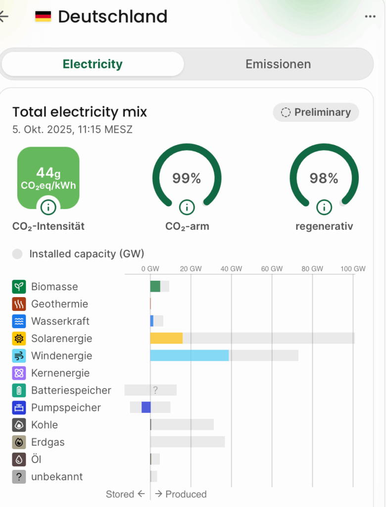 Sobald der Sturm durchgezogen ist, wird Deutschland wieder in weit höheren Bereichen landen. Im Februar 2025 waren es in Deutschland z. B. über 400 g CO2/kWh.
