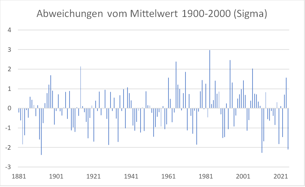 Es war wirklich recht trocken im Frühjahr, hier die Abweichungen vom Mittel 1900-2000 in Vielfachen der Standardabweichung: