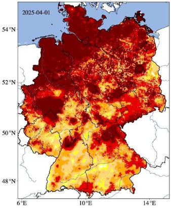 „Dürrekarte von Deutschland im April: Der Norden und der Osten in tiefes Rot getaucht“