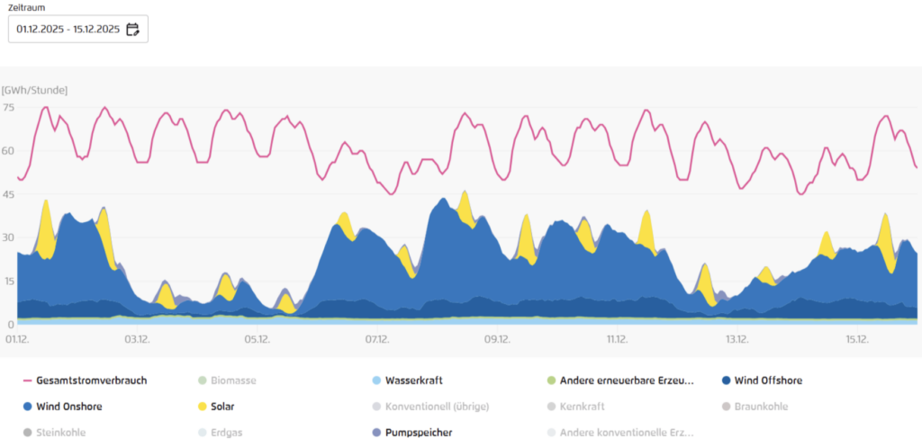 Stromproduktion in Deutschland in der ersten Dezemberhälfte 2025: „stets im Rahmen der Möglichkeiten bemüht“