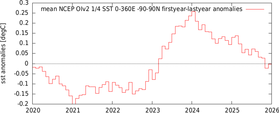 Ende 2025 sind wir bei den SST wieder etwa auf dem Niveau von Anfang 2020 angelangt, was bei Treibhausgaswirkung (wärmend) allein unmöglich ist.