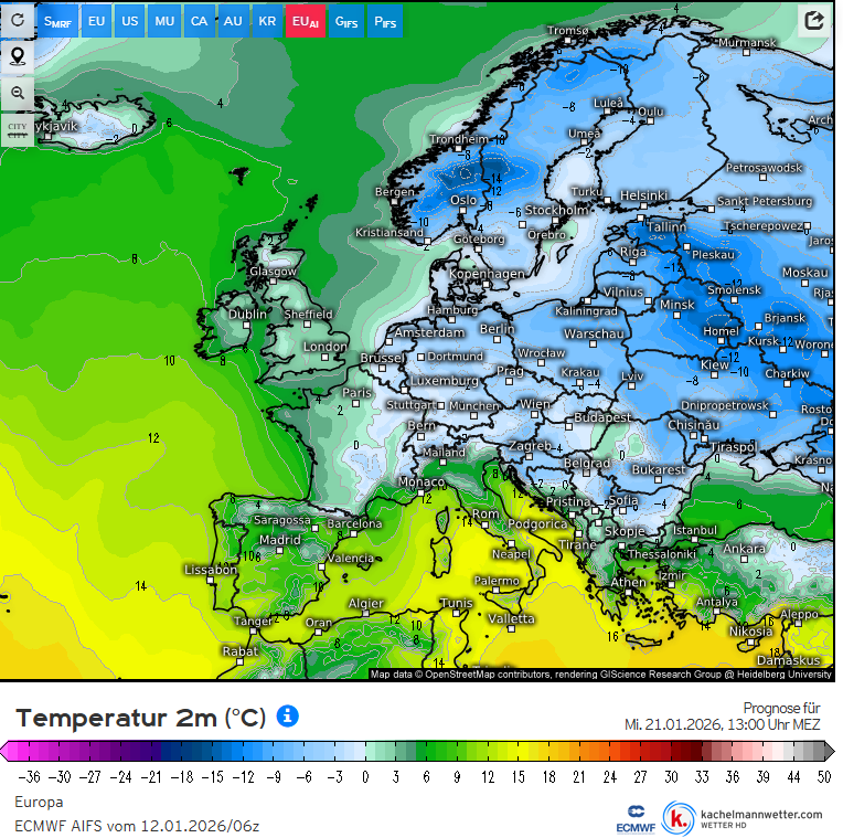 Ist der Winter damit vorbei? Das ist wie üblich schwer zu beantworten, wir vertrauen also weiter auf das bewährte Wettermodell und schauen auf den 21. Januar 2026: