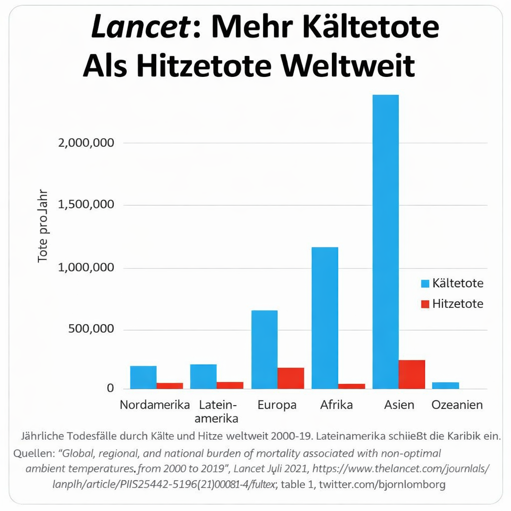 Grafik: Mehr Tote durch Kälte als durch Hitze in allen Erdteilen.